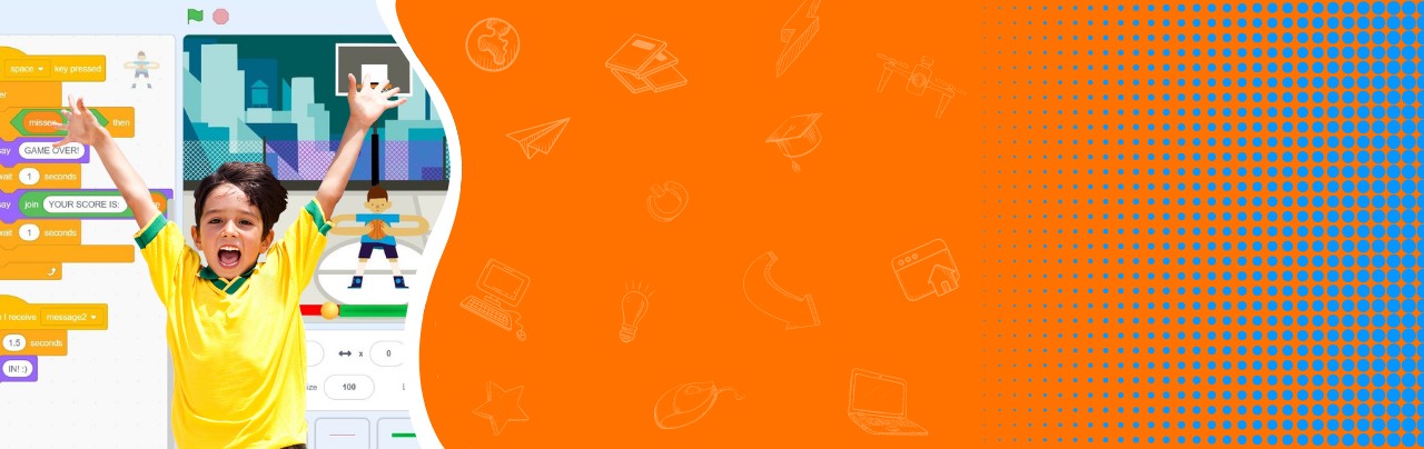 Learn to design interactive games using Scratch, an easy to learn block-based visual coding language developed by MIT lab and sponsored by Google, Amazon and Lego . Scratch's drag-and-drop interface with colorful blocks makes it easy for students to learn and get introduced to coding concepts.